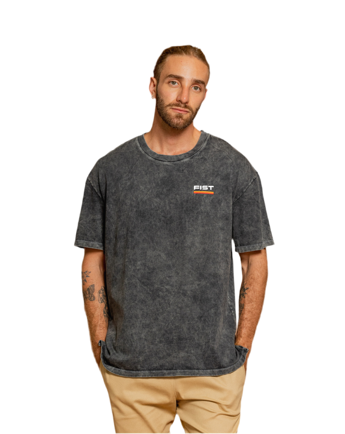 Hecha de algodón suave con acid wash en la pinta asphalto. Cuello redondo en tela rib. Estampado base agua en espalda, alto relieve en punto corazón y en manga.