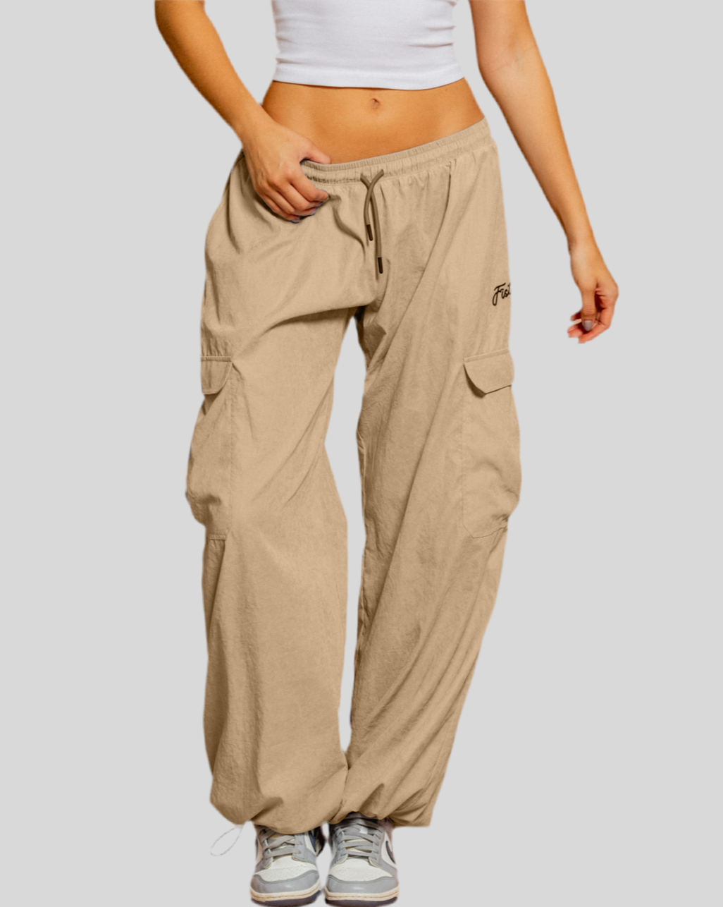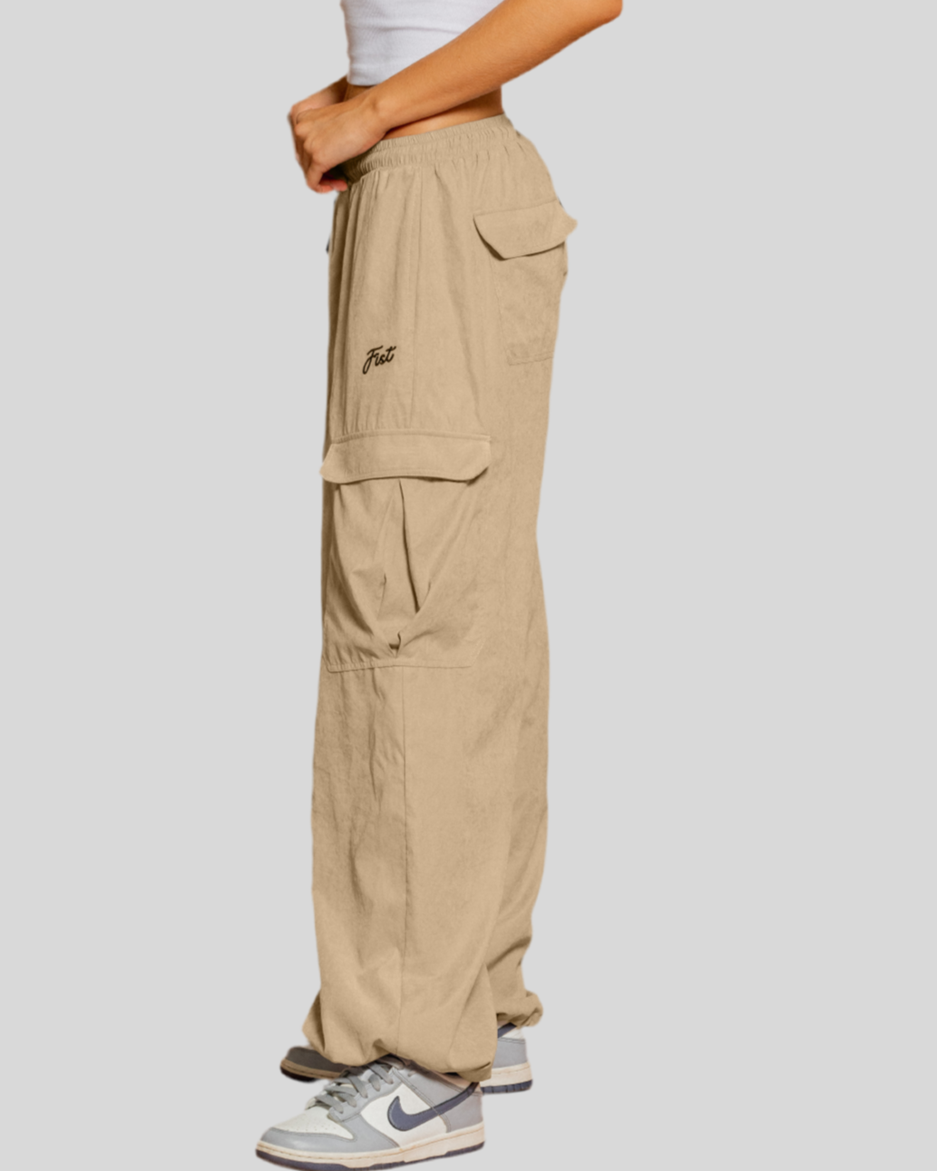 Hecha en tela ligera y fresca con textura de galleta y tacto suave. pretina enresortada y acordonada, bolsillos laterales y tipo cargo en la altura de la rodilla y en posterior. Bota con elastico y tanka. Arte bordado en lateral izquierdo.